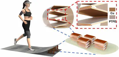 Image credit: AAASFloor-based sensing systems to monitor human activities and identify users are essential for smart homes and intelligent buildings. A low-cost, easy-to-fabricate, and flexible gait sensor system based on triboelectric nano- generator (TENG) is presented in this paper, which can transform gait movements, even in the low-frequency form, into electrical impulses without an external power source. To realize this, a TENG-based gait sensor unit with an optimized structure design is proposed to enhance the sensing sensitivity. A sensing insole module is formed by arranging the sensor units according to the foot pressure distribution. The sensor distribution is then explored and improved by comparative studies of gait recognition performance, which increases the recognition efficiency and the possible application in edge computing scenarios. Furthermore, a deep learning network is developed based on long short-term memory (LSTM) and residual units to extract deep features from multi- channel time-series gait data to boost recognition performance. Experimental results demonstrate that the pro- posed gait sensor system can be utilized for human activity recognition and user identification with accuracies of 97.9 % and 99.4 %, respectively. Finally, a gait-sensing-based fitness exercise monitoring system is constructed that can estimate calorie expenditure and distinguish between standard and non-standard fitness activities with an accuracy of 97.2 %. This work can be extended to various application scenarios such as security surveillance, health monitoring, and intelligent control, which provides a new ubiquitous self-powered sensing solution for the Internet of Things (IoT).